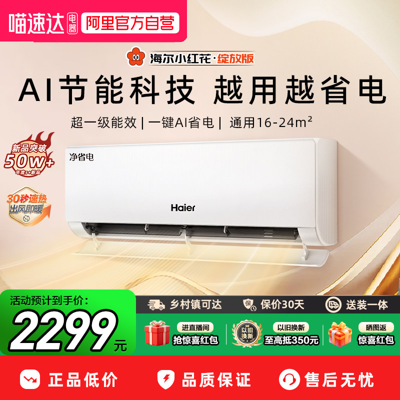 海尔小红花空调净省电官方新一级能效家用1.5匹变频冷暖挂机35E1,卖家喵速达电器官方旗舰店,【单品直降1900+领券200+好评找客户补30,到手仅需2069元!!!!活动仅两天,需要的赶紧下单吧】海尔小红花空调净省电,官方新一级能效,家用1.5匹变频,冷暖两用挂机35E1
