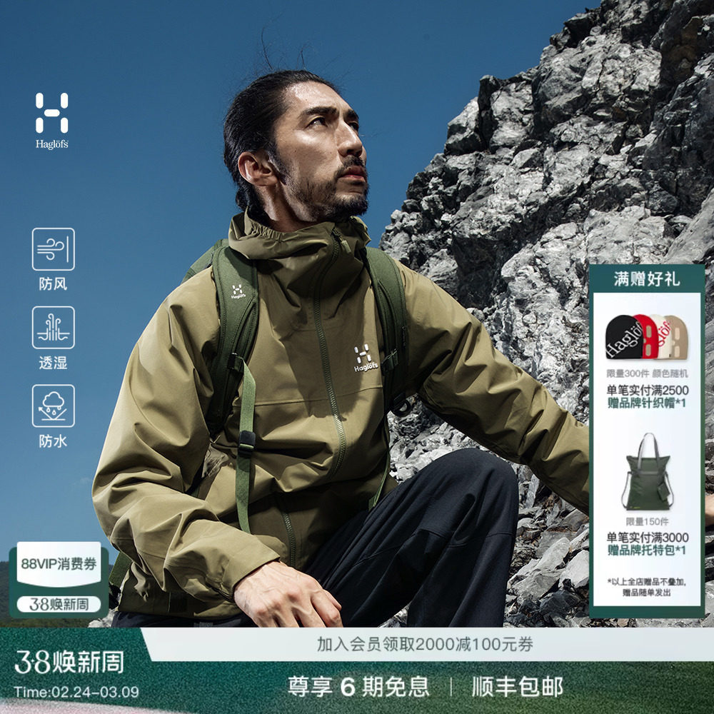 Haglöfs火柴棍Korp Proof Jacket男子户外运动外套防水夹克,卖家HAGLOFS官方旗舰店,不管你是去爬山,还是就在户外,这件都能帮你遮风挡雨。采用再生环保的双层PROOFTM防水面料制作,质地柔软哑光,且耐撕扯,防水、轻便又透气。