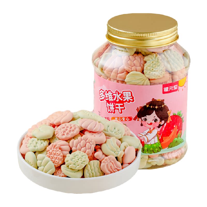 健元堂儿童饼干水果味120g×1罐,无蔗糖高钙营养零食,适合宝宝早餐或加餐,口味清新,健康又美味!