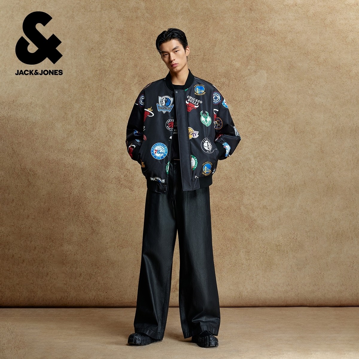 杰克琼斯NBA联名款男装棉服秋冬季新款衣身满印立领廓形保暖外套!!!