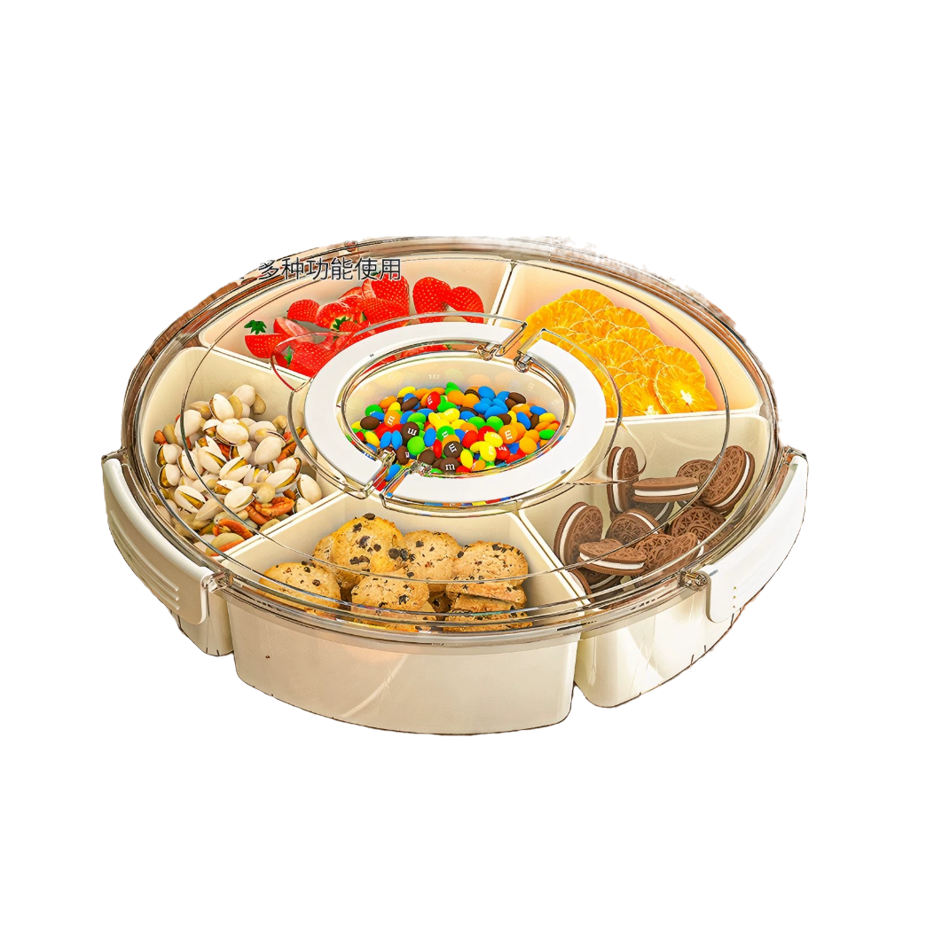 精致水果盘轻奢高档客厅茶几家用干果盘密封旋转瓜子零食盘糖果盒,卖家工匠优品旗舰店,它的设计超级高档,放在客厅茶几上瞬间提升了格调。干果、瓜子、零食都能装,密封设计还不用担心零食受潮。特别的是它可以旋转,取物超方便
