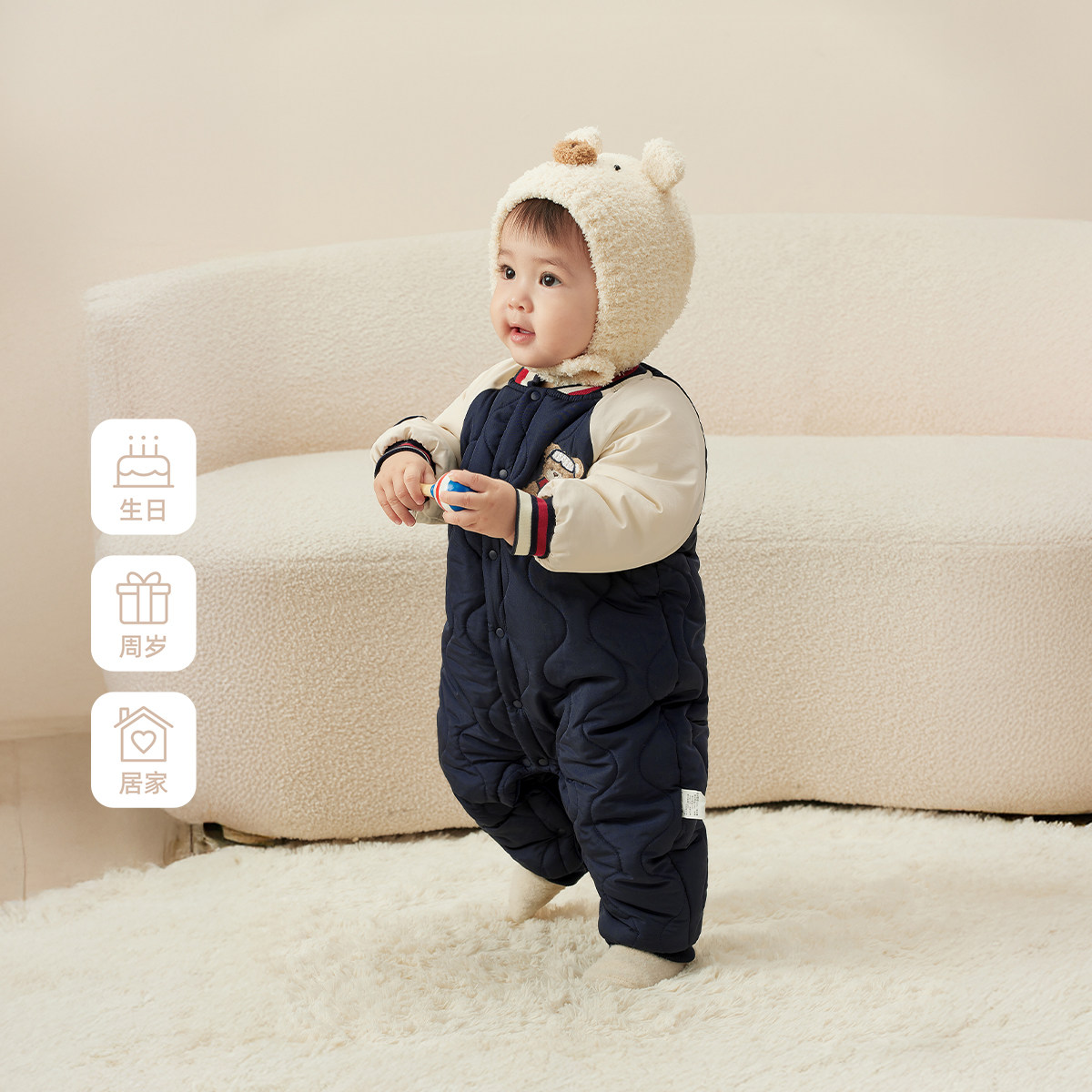 [抗菌远红外]婴儿秋连体衣,宝宝夹棉男童加绒萌熊秋冬哈衣婴童衣服