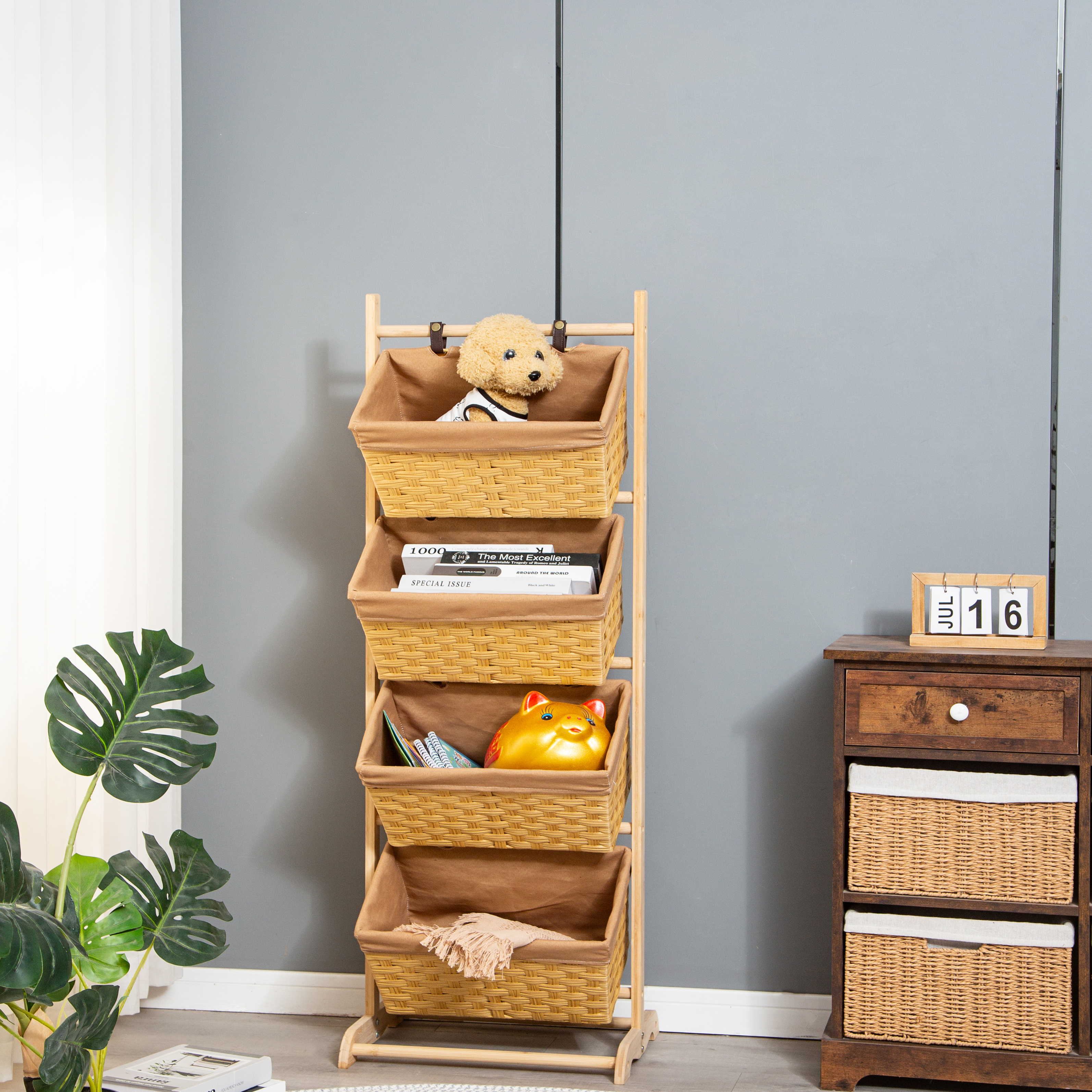 客厅零食玩具收纳架实木置物架卧室藤编多层落地加宽大容量收纳篮,卖家中鲁皓强,天然楠竹打造,全方位支撑,承重力强,赠送运费险
