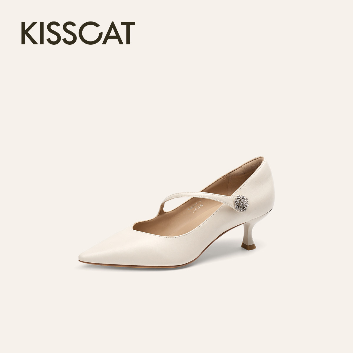KISSCAT接吻猫[花漾高跟玛丽珍]春季法式一字带时装单鞋女通勤鞋,卖家kisscat官方奥莱旗舰店,【活动价799-60店铺满减-44立减优惠-96立减-55.3(满1000-100消费券分摊)=543.7元】脚感舒适不累脚,尖头细跟设计,视觉增高显腿长