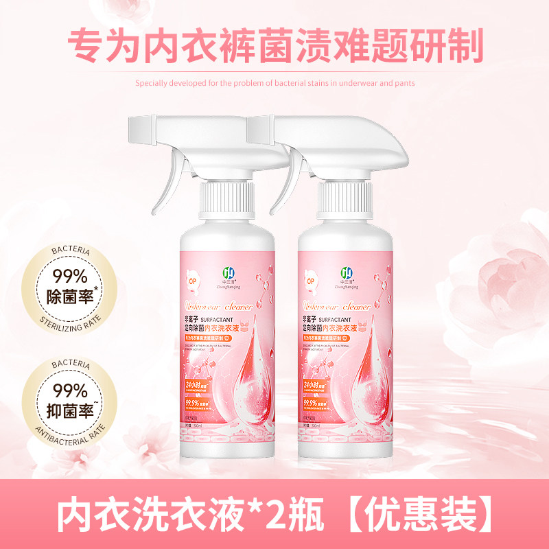 中三清内衣清洗液,非离子定.向除菌技术,温和不伤手、不损面料,专为女性私密衣物定制!6.9元到手两大瓶!抑.菌.率.超99%,洗得干净更安心,日常护理一步到位~呵护从贴身开始,现在就安排!