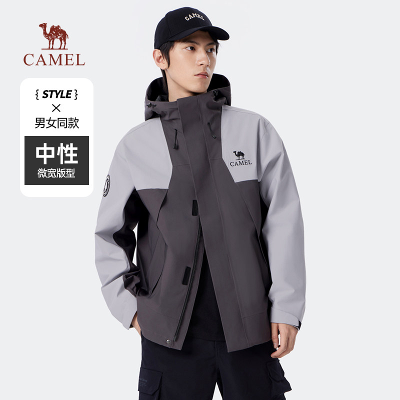 双倍礼金63.8,骆驼新款蛟龙冲锋衣,防风防水,适合秋冬户外登山,男女情侣款,保暖透气,轻便耐用,