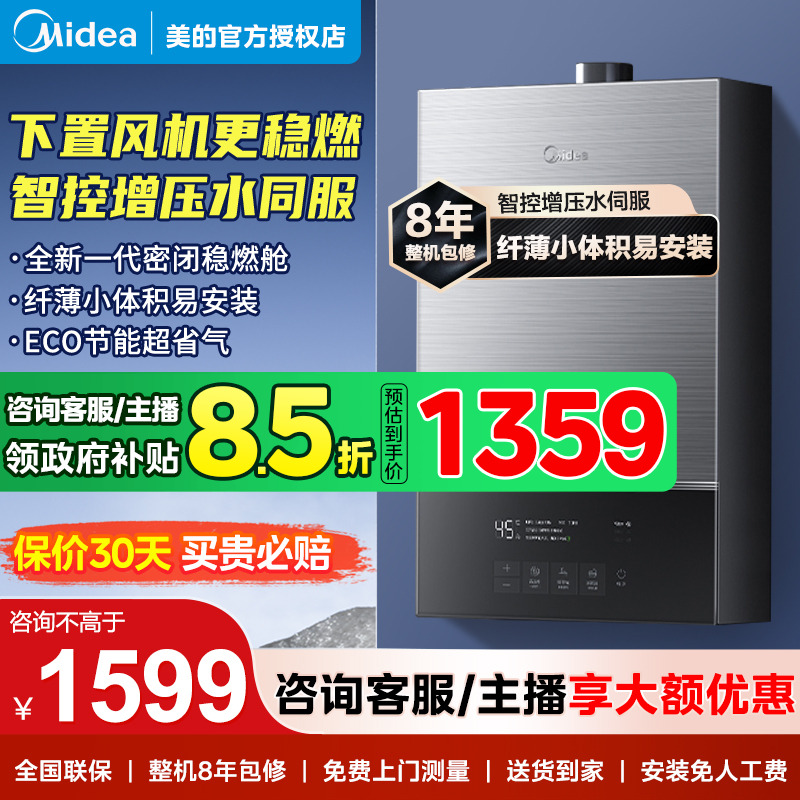 美的燃气热水器天然气13升16升家用恒温增压水伺服下置风机MATE,卖家美的益美专卖店,