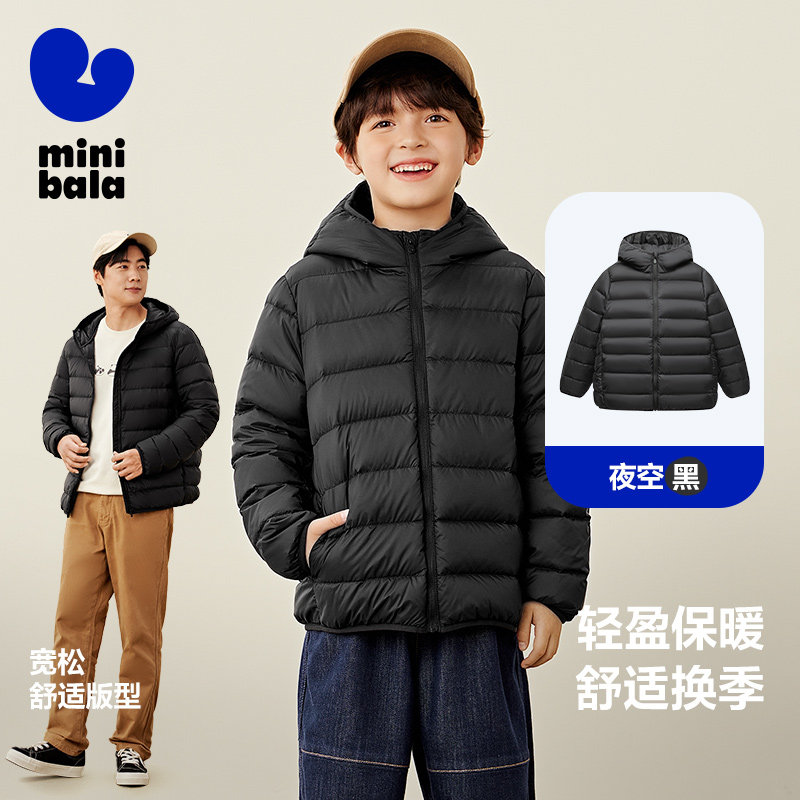 【活动价224.9-45元立减-4.49元淘金币-21.92(满200-25消费券分摊)=153.49元】minibala三防羽绒服,防水防油污,脏了擦一擦就干净。轻暖不压身,跑跳上学都自在