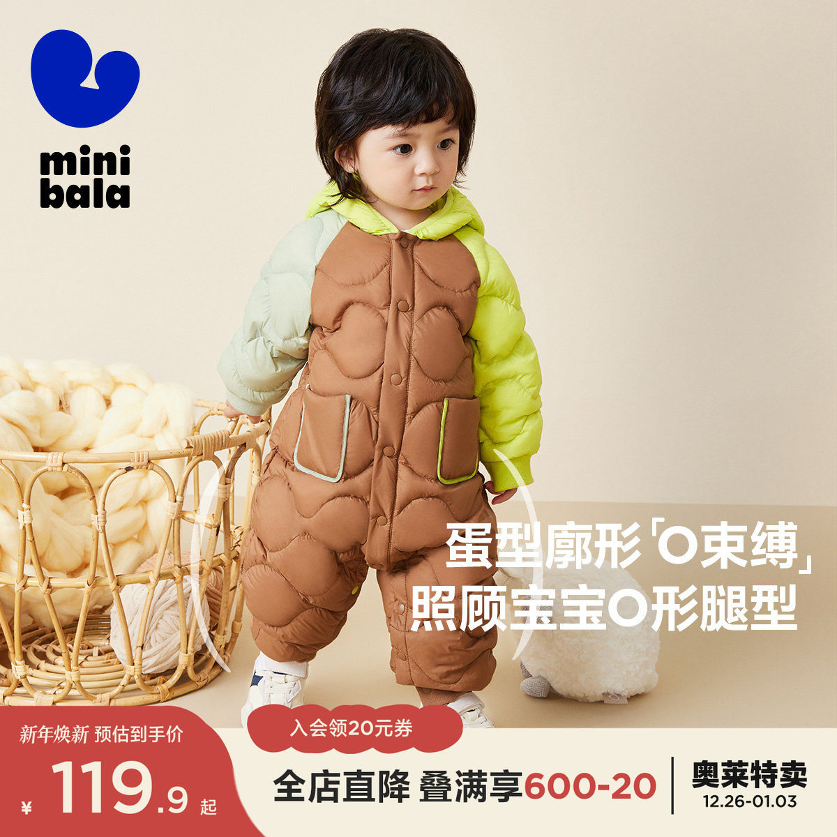 迷你巴拉婴儿羽绒服冬季连体衣撞色