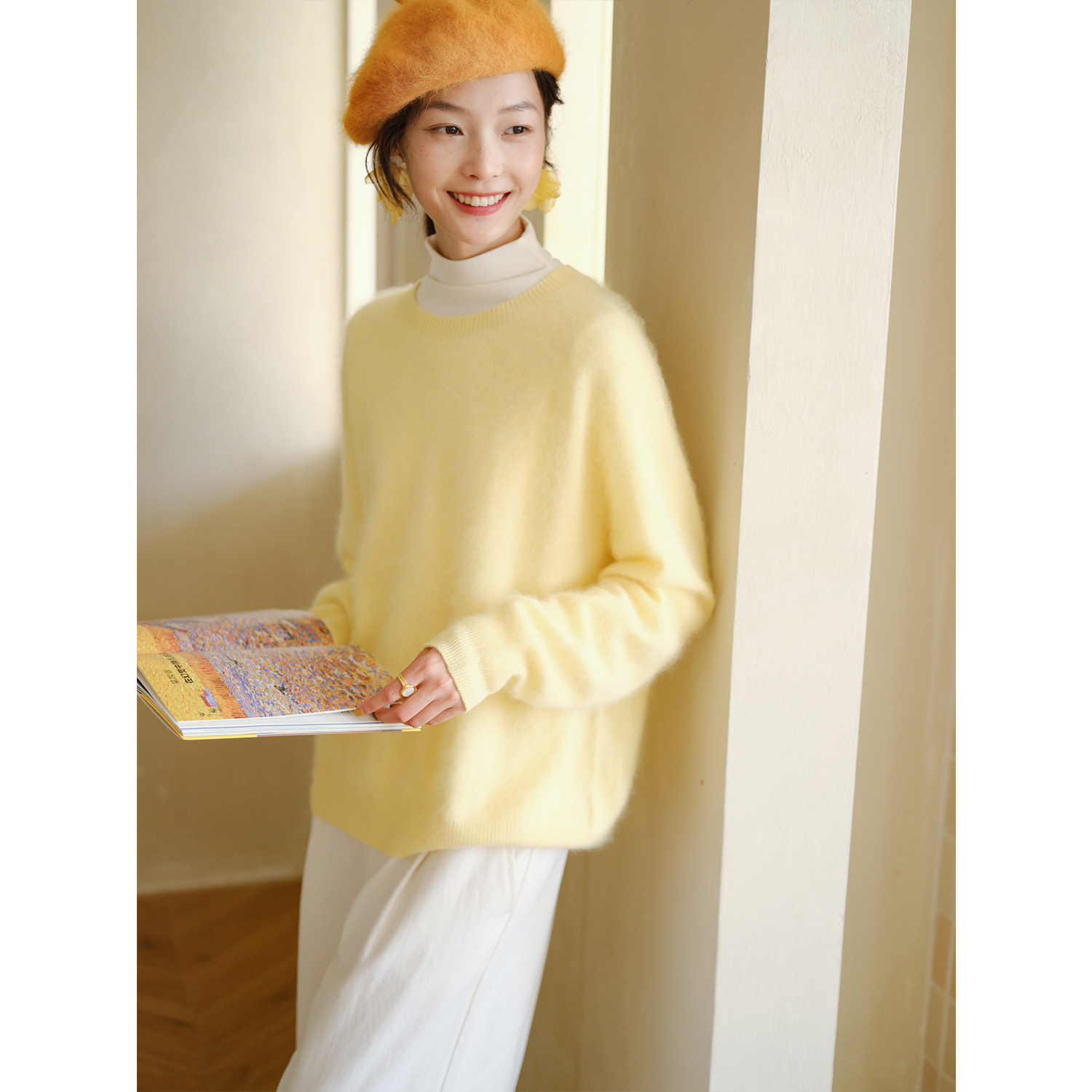 奶黄包羊绒羊毛混纺慵懒温柔针织毛衣