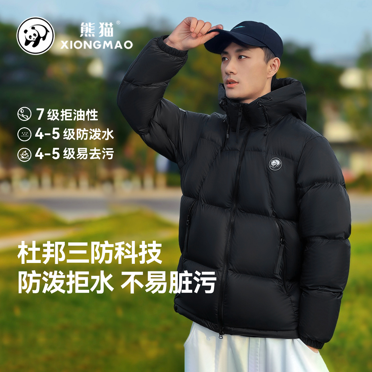 暖烘烘熊猫羽绒服男女2025冬季保暖防风雪蓄热连帽加厚面包服外套,卖家熊猫时尚旗舰店,【超级立减12%】【可叠加40品类卷】时尚博主,精选同款,防泼水抗塞羽绒服,泡泡羽绒系列,这是一款轻暖防小雨的短款面包羽绒服,甄选高蓬鸭绒,穿着轻暖舒适;加持防泼水科技,轻松抵御小雨突袭:多重蓄温保暖,有效抵御风雪天气