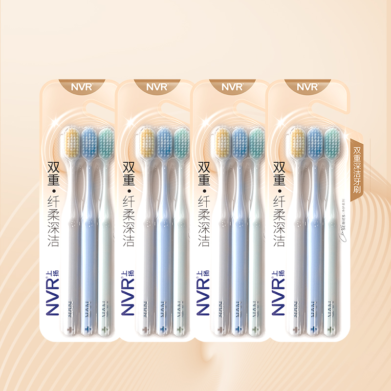 【天猫超市,品质保证】NVR双重纤柔深洁牙刷,高效宽头高密软毛。