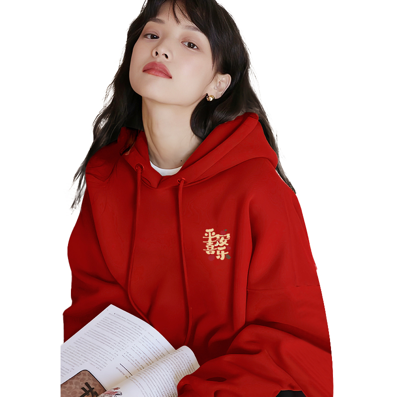 one more红色连帽卫衣女款2025新款冬季加绒加厚本命年新年衣服S,卖家onemore官方outlets店,叠淘金币到手更低~onemore红色连帽卫衣女款2025新款冬季加绒加厚本命年新年衣服S,