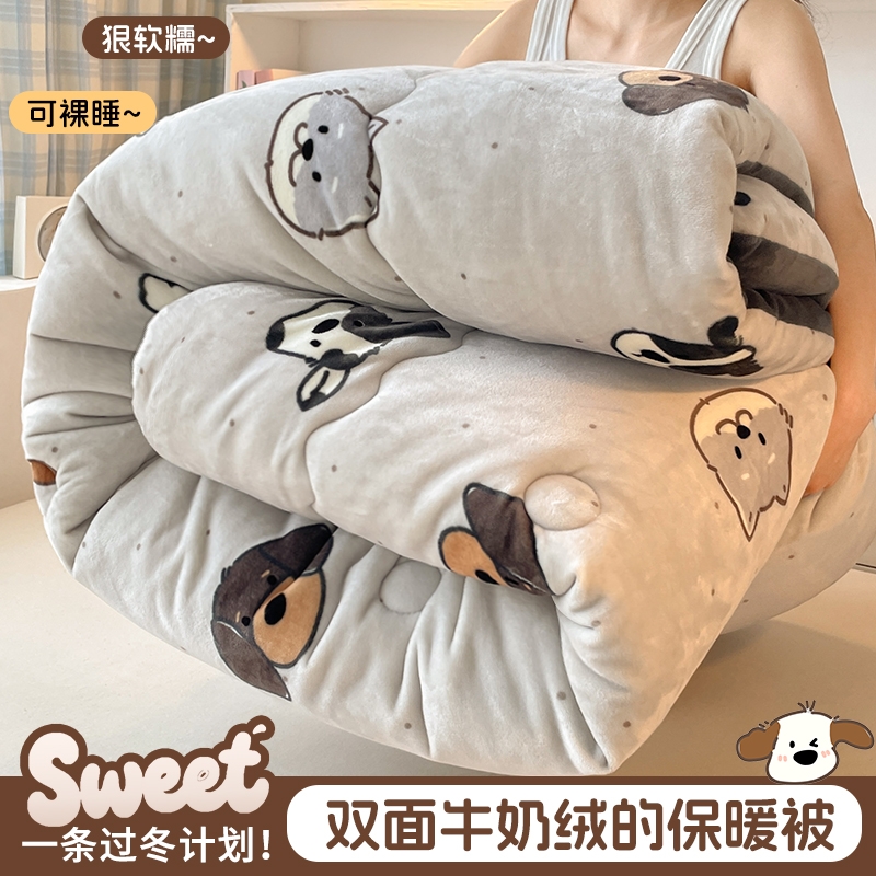 牛奶绒被子冬被春秋被宿舍单人学生儿童家用冬季加厚保暖棉被被芯,卖家天天特卖工厂,冬天到来了,牛奶绒棉被要早早的备起来!!-【全尺寸同价】艳阳天牛奶绒棉被-AB面社设计,任意换面-软乎乎的,睡觉都变甜啦