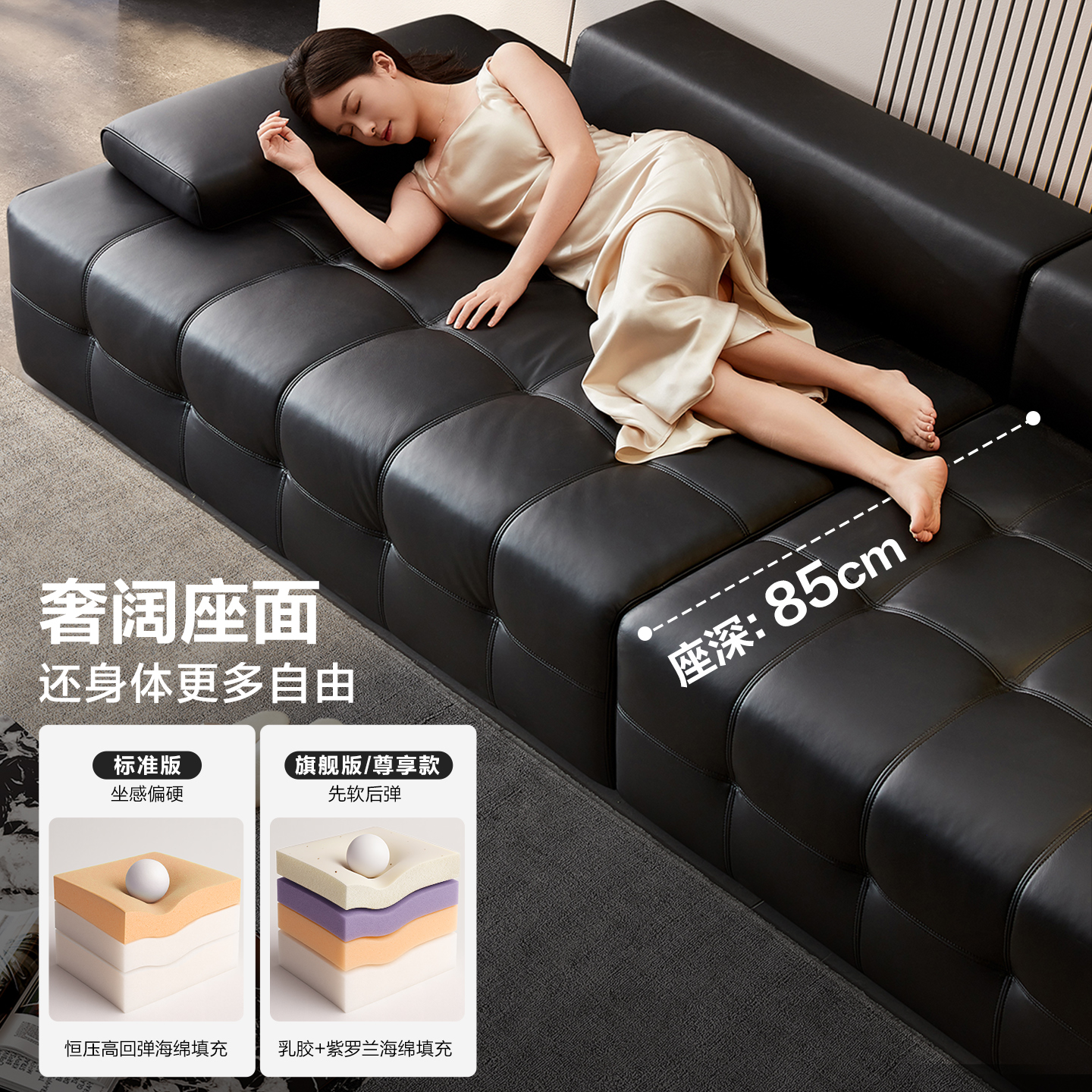 全友家居大黑牛劳伦斯,沙发客厅意式2025新款黑色真皮沙发