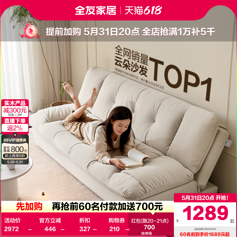 政府补贴全友家居奶油风猫抓布艺云朵沙发客厅小户型沙发床三人位,卖家全友家居官方旗舰店,