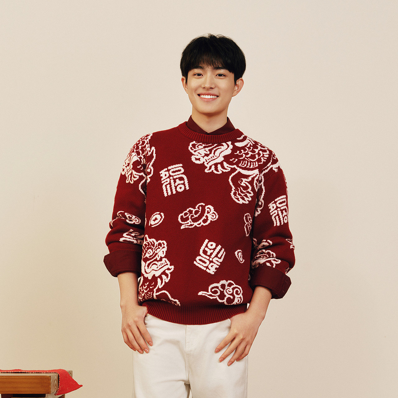 森马张仁华非遗联名毛衫男春麒麟时尚提花针织衫宽松休闲情侣毛衣!!