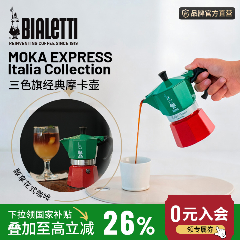 圣诞心意礼bialetti比乐蒂三色旗摩卡壶家用意式咖啡壶户外,卖家bialetti比乐蒂官方旗舰店,【立减58元+淘金币抵扣36.78元+国家补贴51.63元!!!】