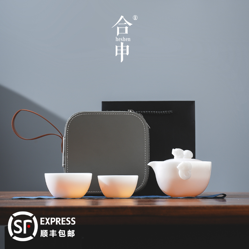 高端羊脂玉白瓷旅行茶具套装便携式防烫单人泡茶快客杯随身收纳包,卖家合申旗舰店,