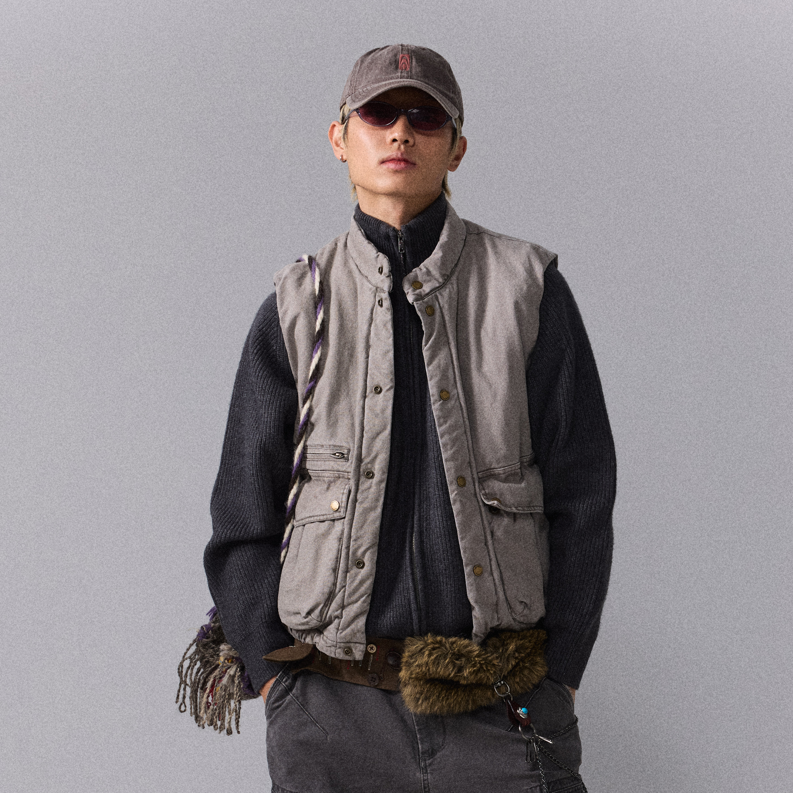【活动价529-80元立减-15元淘金币-53.8元(满480-60元消费券)】—瞬时山野复古棉服马甲!洗水做旧设计,山系户外风超有型。轻便不压身,保暖又百搭