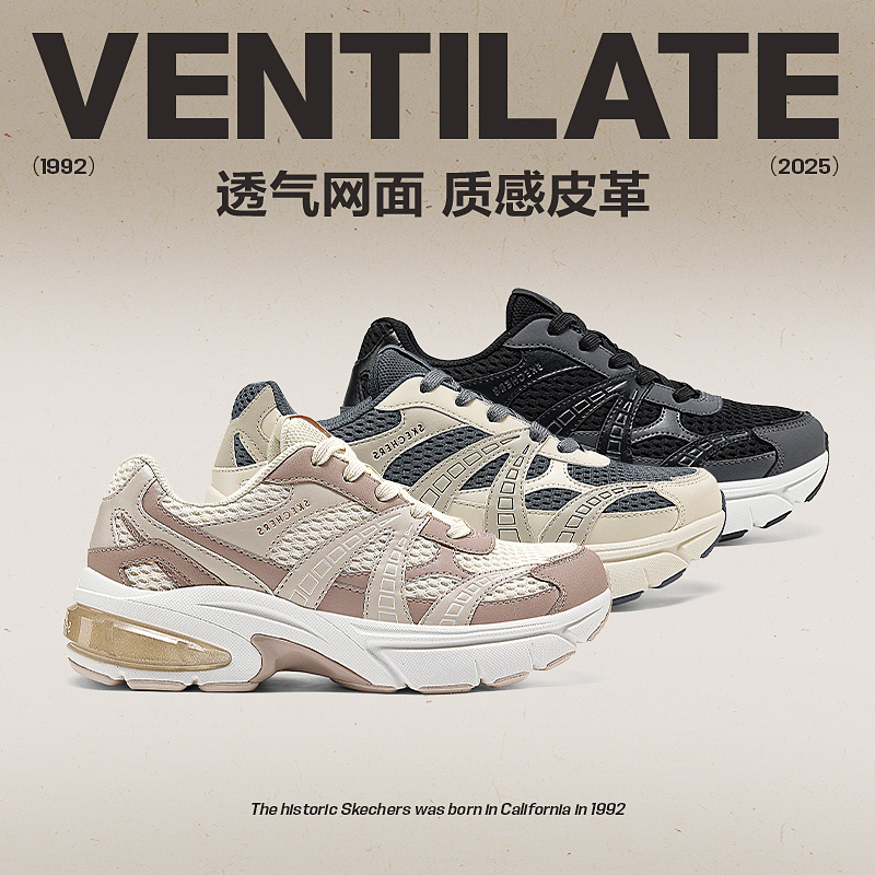 斯凯奇官方outlets月影女子复古老爹鞋跑步鞋拼接立体层次鞋面.。。。