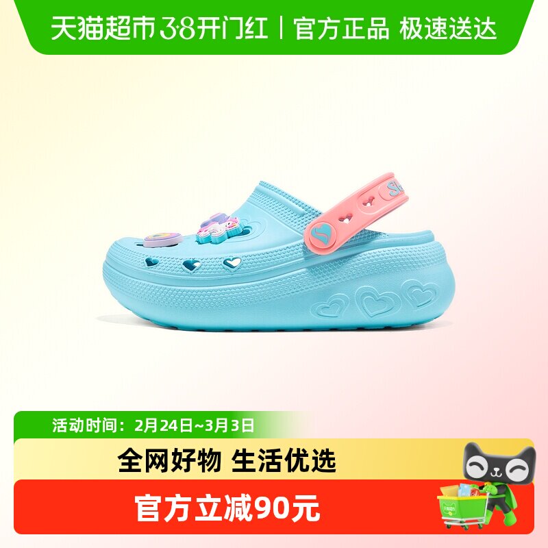 Skechers儿童一脚蹬洞洞鞋,女童时尚沙滩鞋,疏水透气,轻便舒适,适合春夏出游。