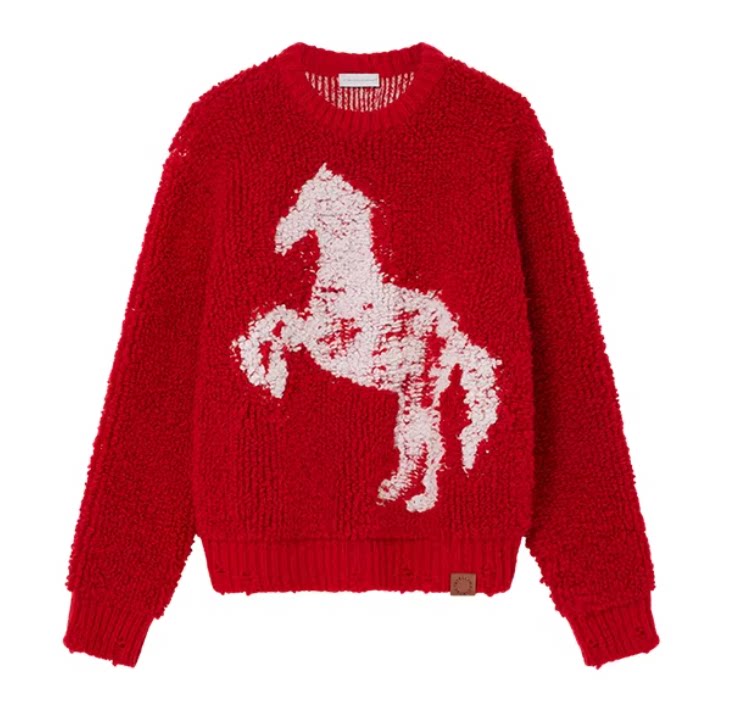 [礼物]Stella McCartney2026春季新品红色骏马图案毛衣针织衫,卖家,【平台红包-3】它采用优质的羊毛混合纤维,不仅柔软舒适,还能持久保暖。穿上它,你就像被温暖的阳光包围。