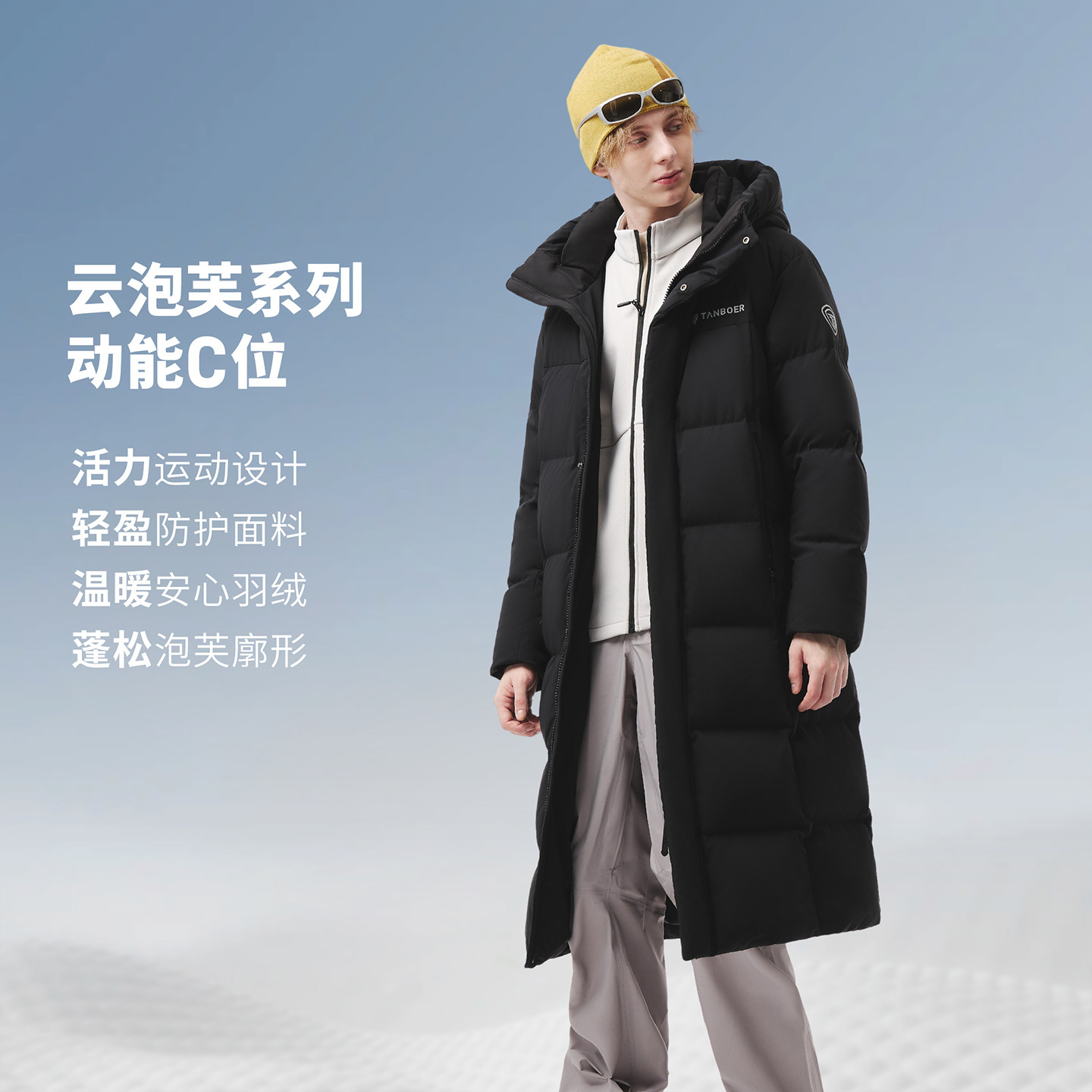 坦博尔高充绒长款羽绒服男