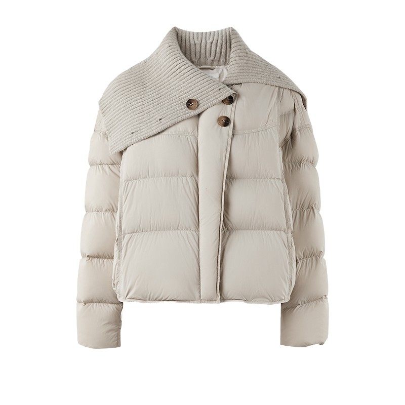 围巾立领针织拼接面包服2025冬季新款女装时尚简约羽绒服棉衣外套,