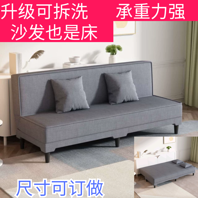 折叠沙发床无扶手小户型布艺多功能家用简易懒人直排公寓定制订做,卖家天誉家居,