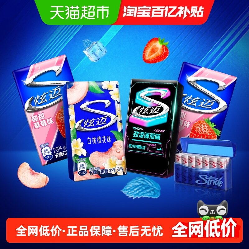 炫迈无糖口香糖白桃槐花味草莓味午夜风暴薄荷味清新口气零食,卖家天猫超市,炫迈无糖口香糖,多种口味,清新口气!持久美味!