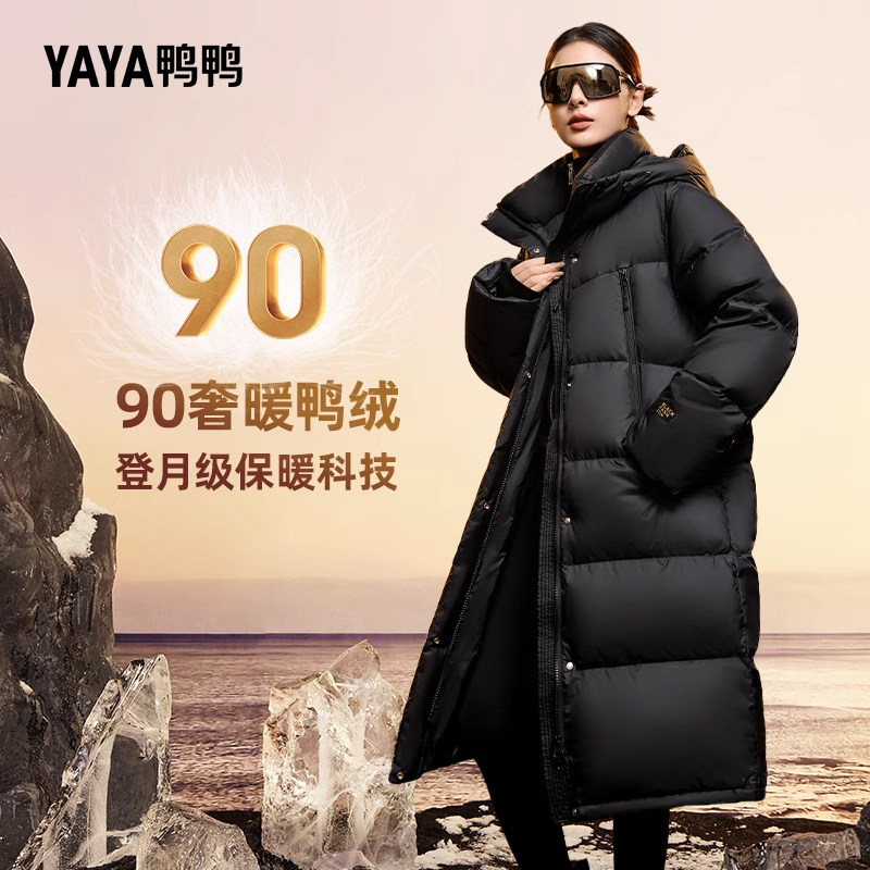 鸭鸭羽绒服女2025秋冬过膝中长款连帽休闲百搭加厚鸭绒外套A,卖家鸭鸭官方旗舰店,鸭鸭高奢90绒!长款过膝!超厚保暖!鸭鸭官旗!线下超贵!天冷必备!