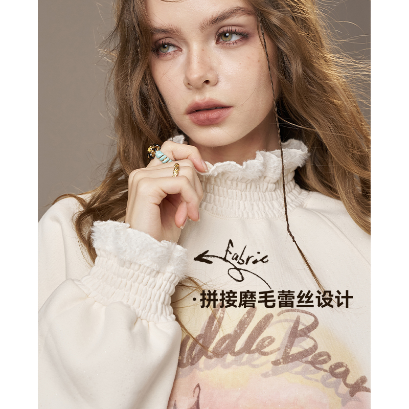 妖精的口袋木耳边米白色印花圆领卫衣女2025年秋季新款宽松上衣,卖家妖精的口袋旗舰店,亮点提炼:清新木耳边设计+简约米白色调,轻松打造温柔休闲风;秋季上新,适配多种穿搭场景。产品本身亮点:精选舒适棉质混纺面料,亲肤透气不闷热;宽松剪裁包容身形,活动自如;经典圆领搭配精致小面积印花,细节耐看不单调;品牌源自南京,注重日常穿着的实穿性与设计感。无论是单穿还是叠搭开衫、马甲,都能展现自然随性的气质。适合学生、通勤及日常出街等多种场合,兼顾时尚感与实用性。