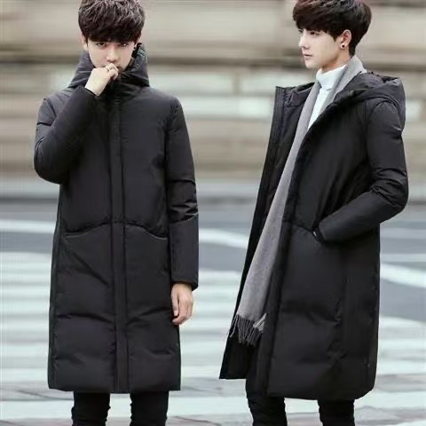 羽丝绒服男中长款加大码厚外套连帽白鸭丝绒
