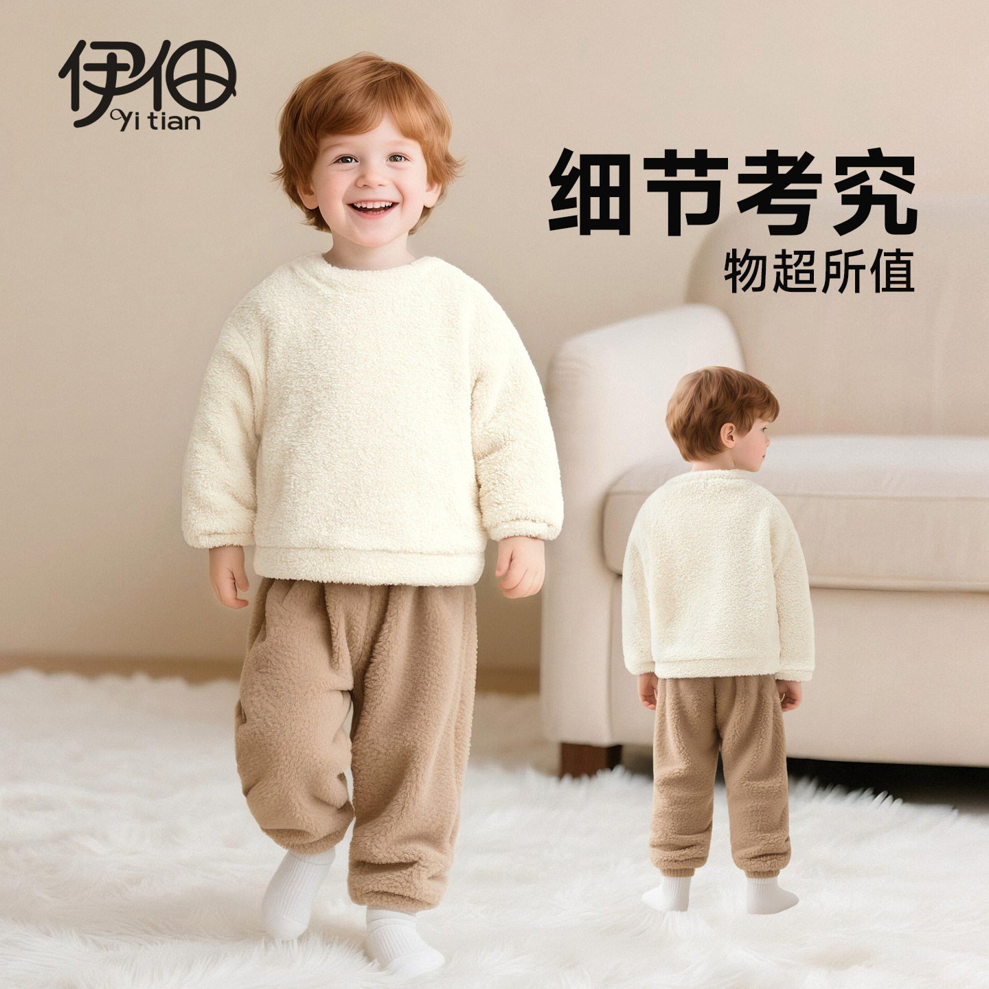 云朵绒儿童睡衣秋冬季男女孩保暖加厚外穿家居服宝宝加绒上衣,卖家伊佃旗舰店,云朵绒黑科技面料!柔软亲肤不掉毛,加厚加绒锁温保暖,宝宝穿着像裹在云朵里~秋冬季高性价比儿童家居服,外穿居家两相宜,妈妈囤货首.选价!