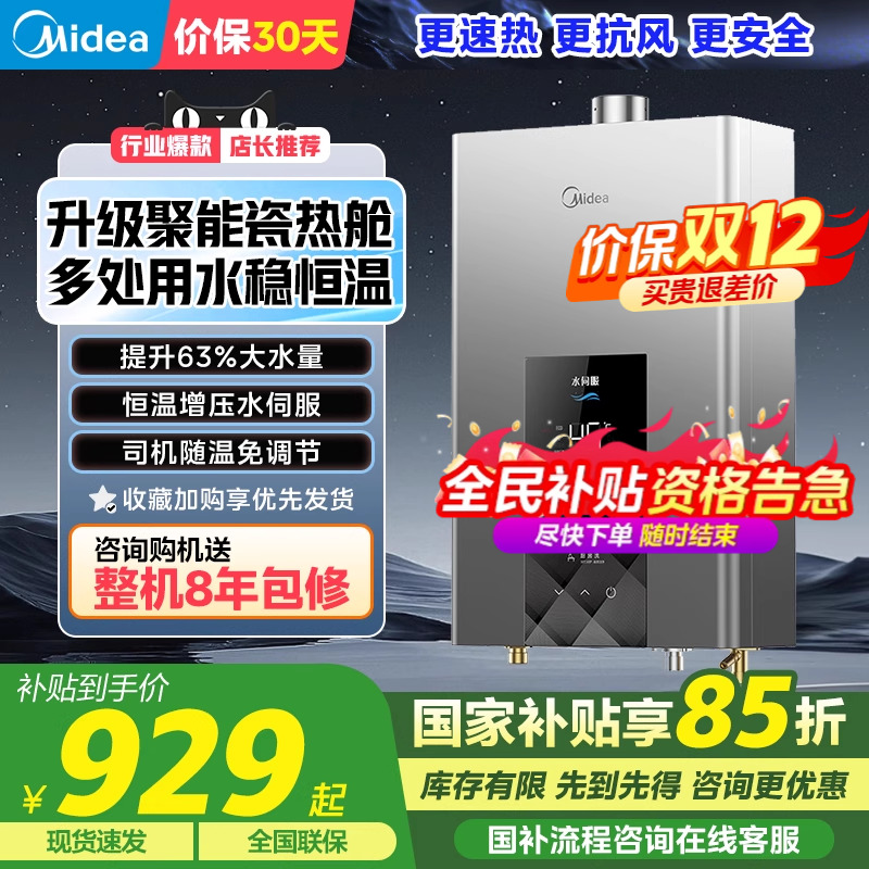 国补20%,金币抵扣23元,以旧换新抵扣30元,到手879元,美的燃气热水器,提升63%大水量,恒温增压水伺服,司机随温免调节。报价双十二,值得入手。
