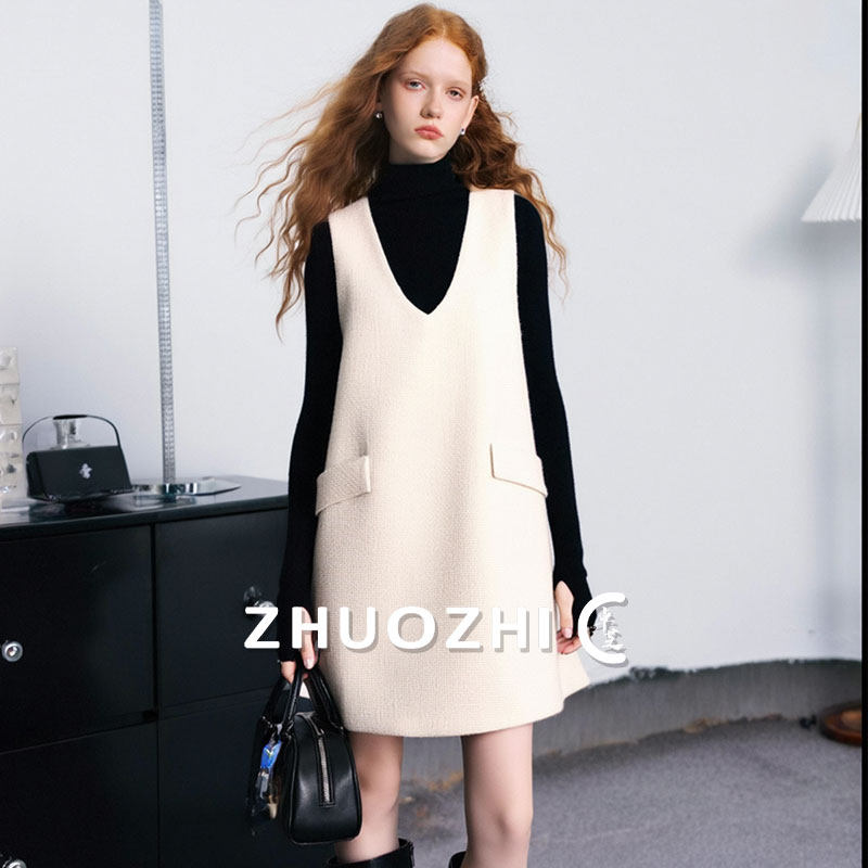 卓芝小香风无袖中长款2025秋冬背心裙女马甲时尚高级感连衣裙,卖家卓芝旗舰店,【卓芝】,小香风无袖中长款2025秋冬背心裙女马甲时尚高级感连衣裙